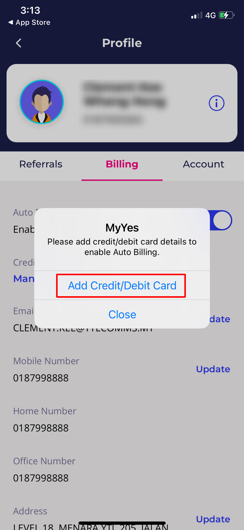 Tekan ‘Tambah Kad Kredit/Debit’
